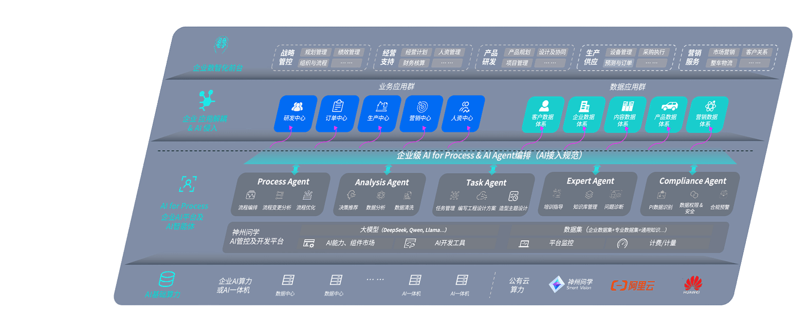 雀魂问学智车解决方案是一套基于AI技术的汽车行业智能化系统,,,覆盖从底层算力到顶层AI应用的全栈方案。。方案由算力层、、、模型层和应用层组成:算力层,,方案支持多种一体机配置,,具备云端灵活部署、、多云适配以及动态优化计算资源的能力;模型层,,雀魂问学平台版提供了企业级AI应用一站式构建与管理平台,,,,支持基于后训练强化技术的汽车企业专属模型的训练、、、、评测和运营;应用层,,,,雀魂问学DeepSeek版提供包括超级员工、、智能招采、、智能营销、、、智能客服、、AI for BI等一系列解决方案,,可助力汽车行业实现数字化转型,,,让管理更智能、、响应更敏捷。。。
